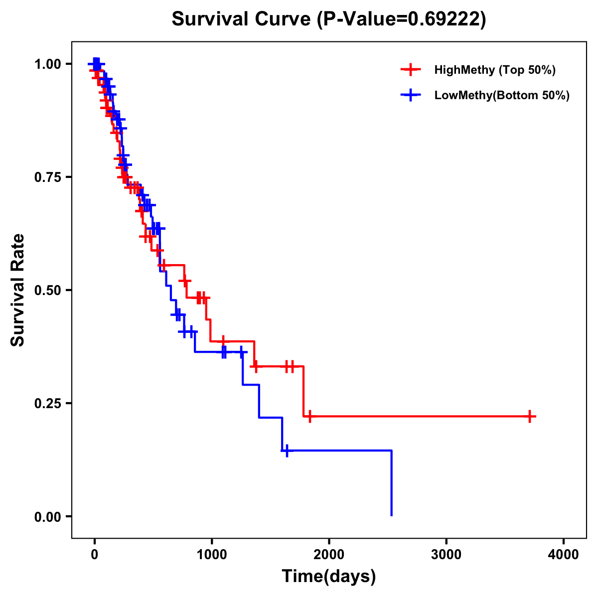 | Survival Curve of Esophagus Cancer of Expression | Survival Curve of Esophagus Cancer of Methylation | ||