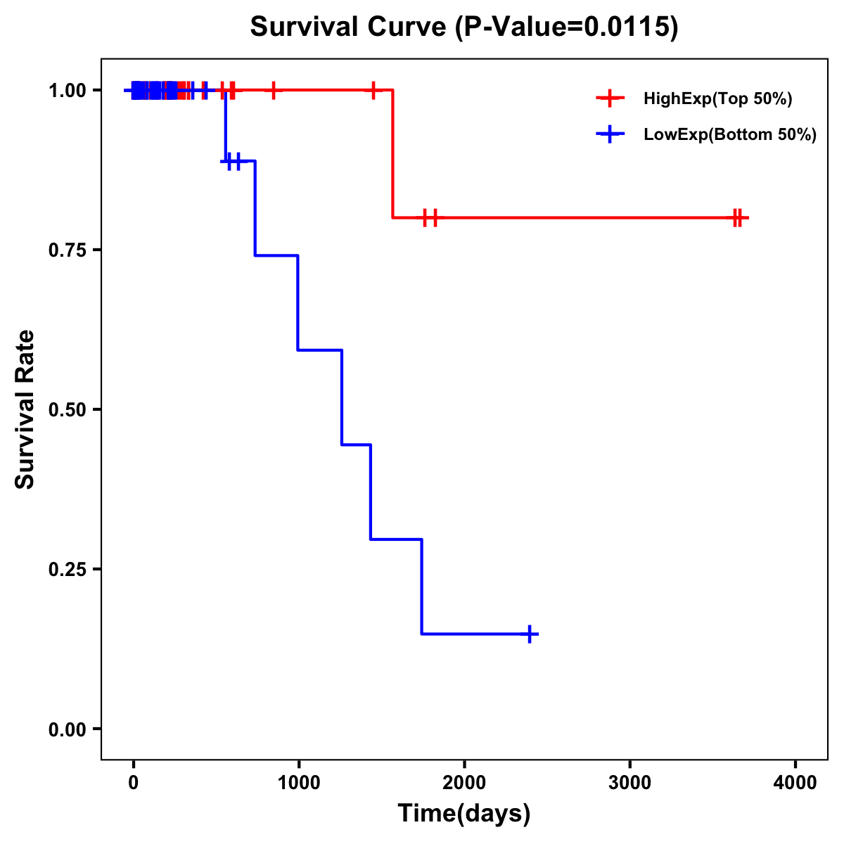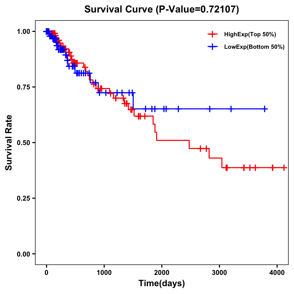 | Survival Curve of Colon Cancer on Expression Level |