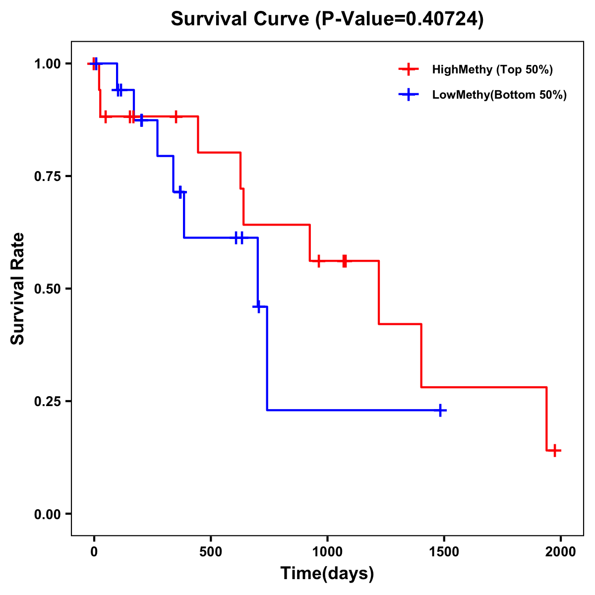 | Survival Curve of Biliary tract Cancer of Expression | Survival Curve of Biliary tract Cancer of Methylation | ||