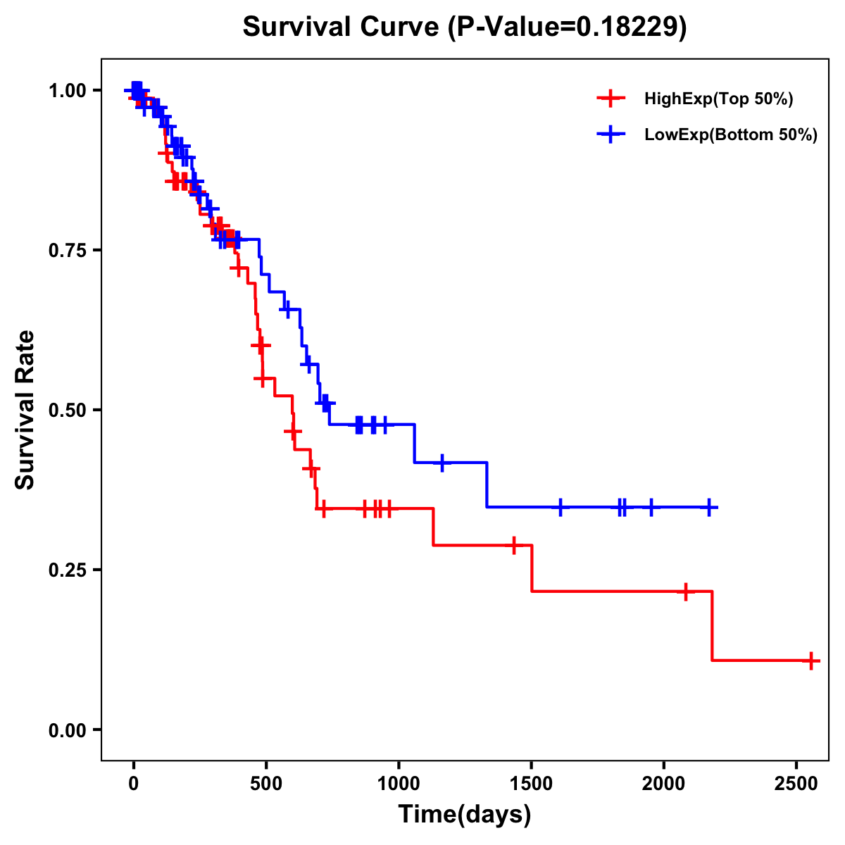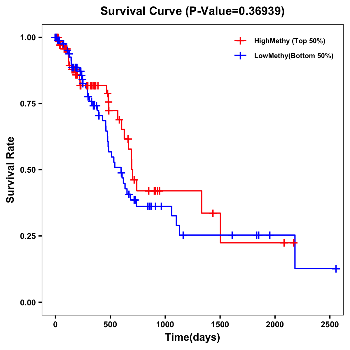 | Survival Curve of Pancreatic Cancer of Expression | Survival Curve of Pancreatic Cancer of Methylation | ||