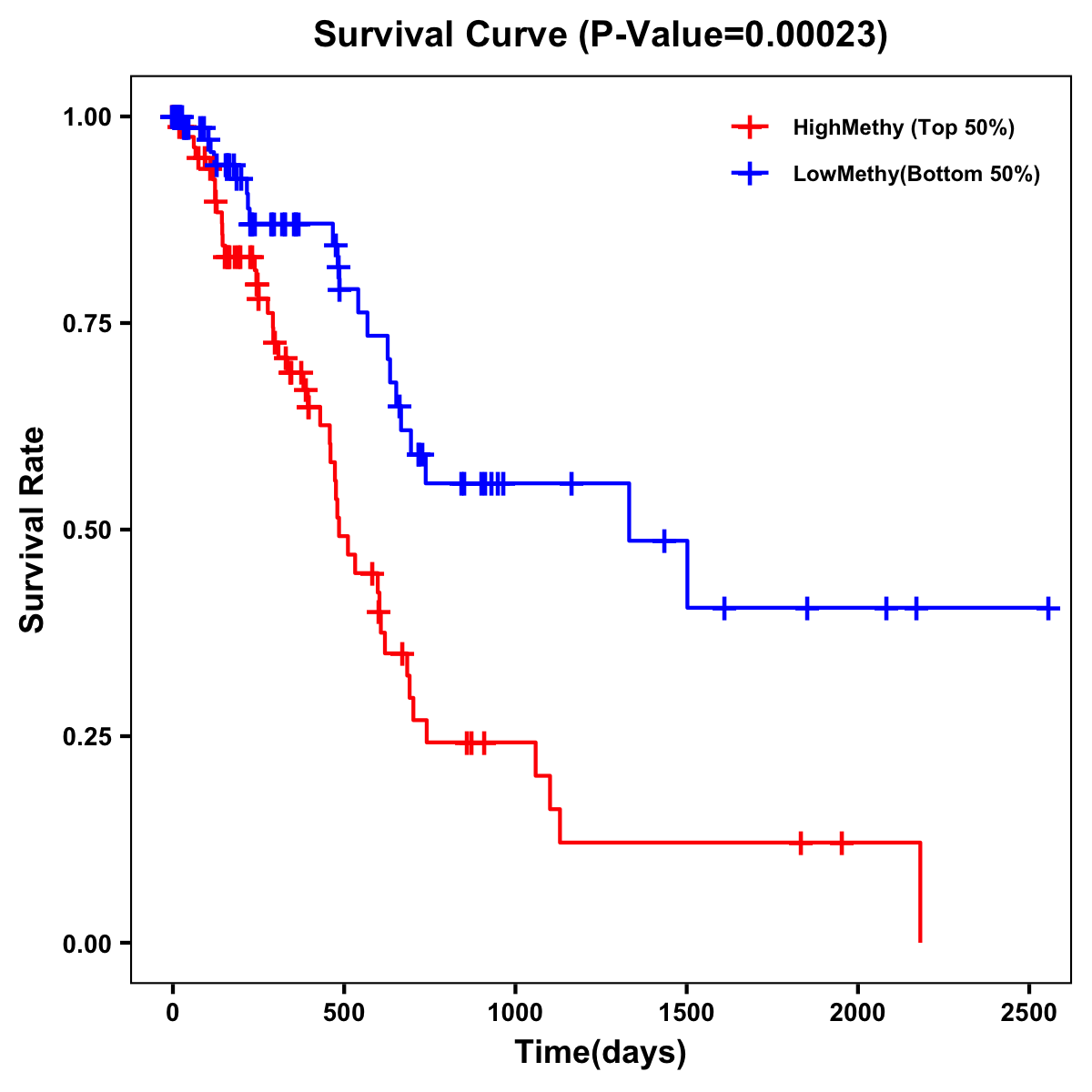 | Survival Curve of Pancreatic Cancer of Expression | Survival Curve of Pancreatic Cancer of Methylation | ||