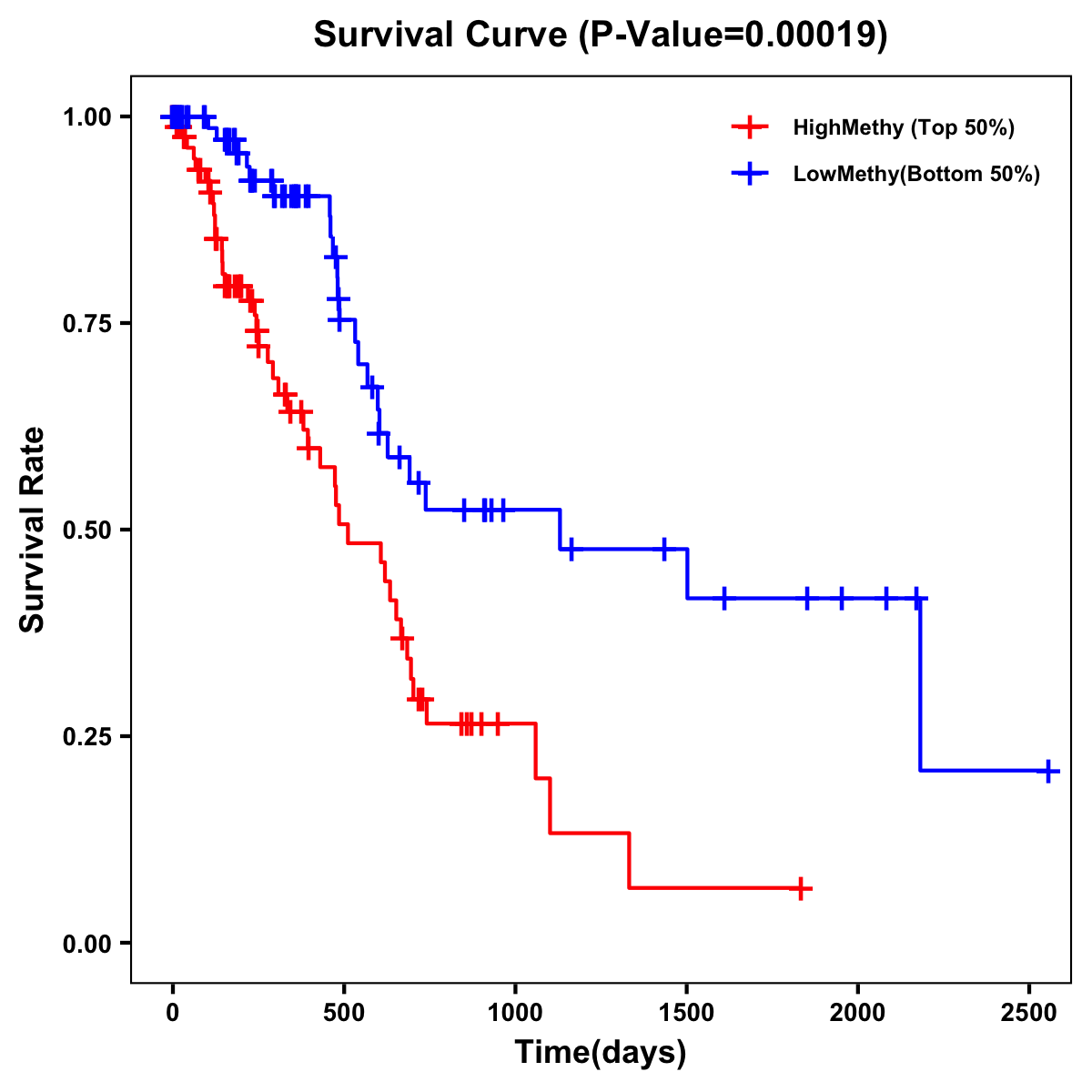 | Survival Curve of Pancreatic Cancer of Expression | Survival Curve of Pancreatic Cancer of Methylation | ||
