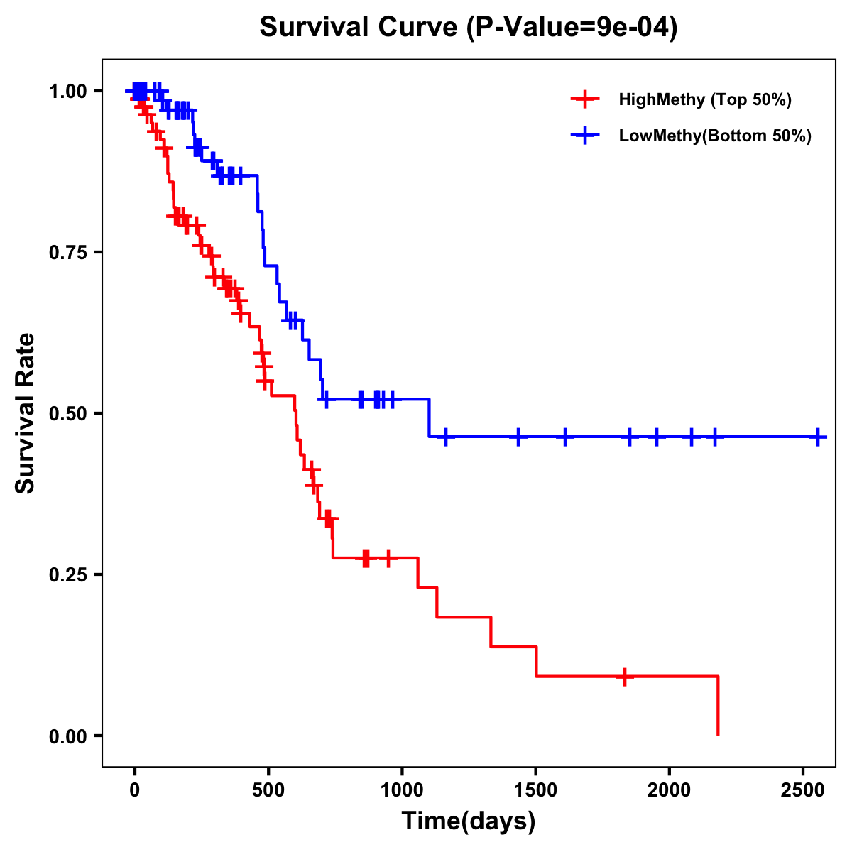 | Survival Curve of Pancreatic Cancer of Expression | Survival Curve of Pancreatic Cancer of Methylation | ||