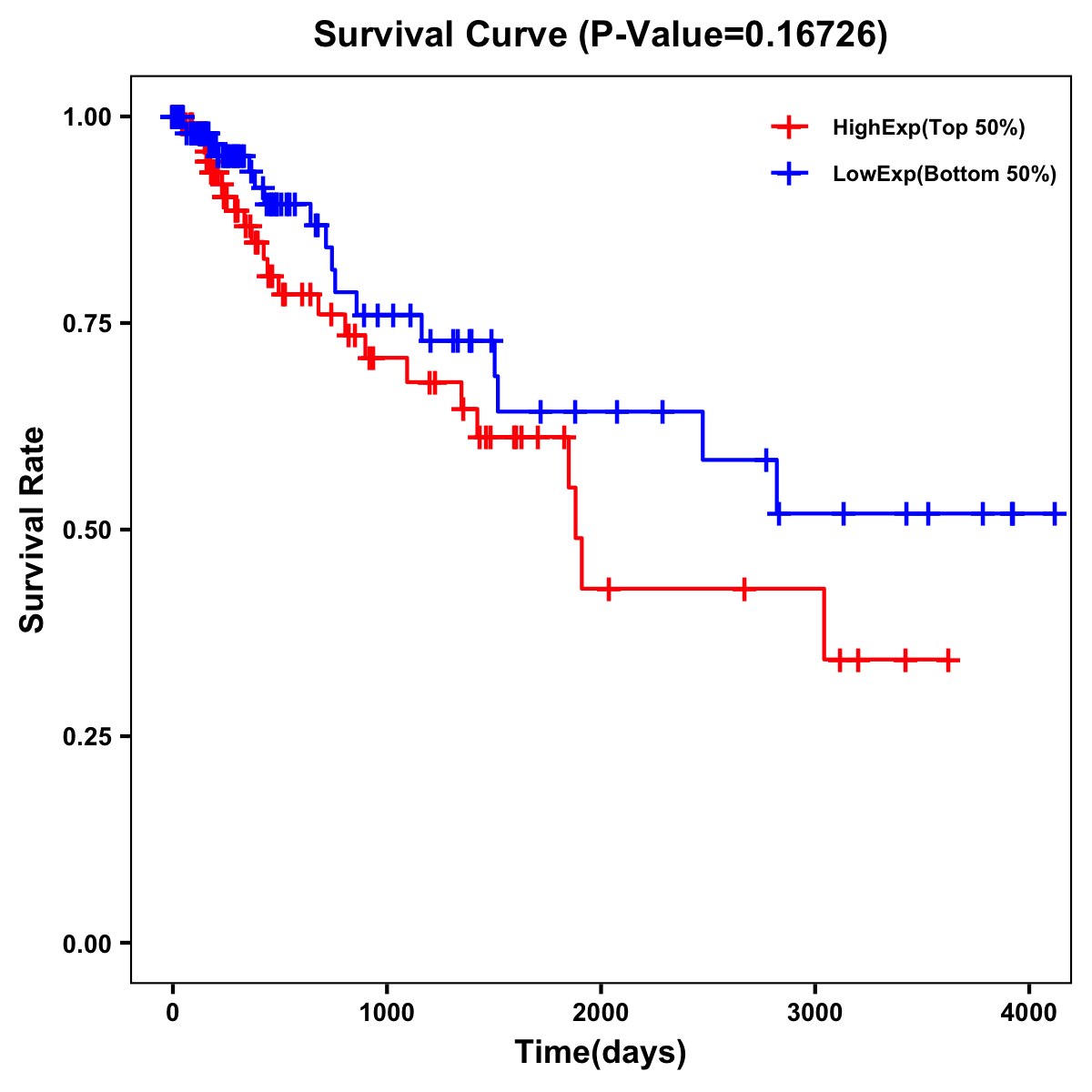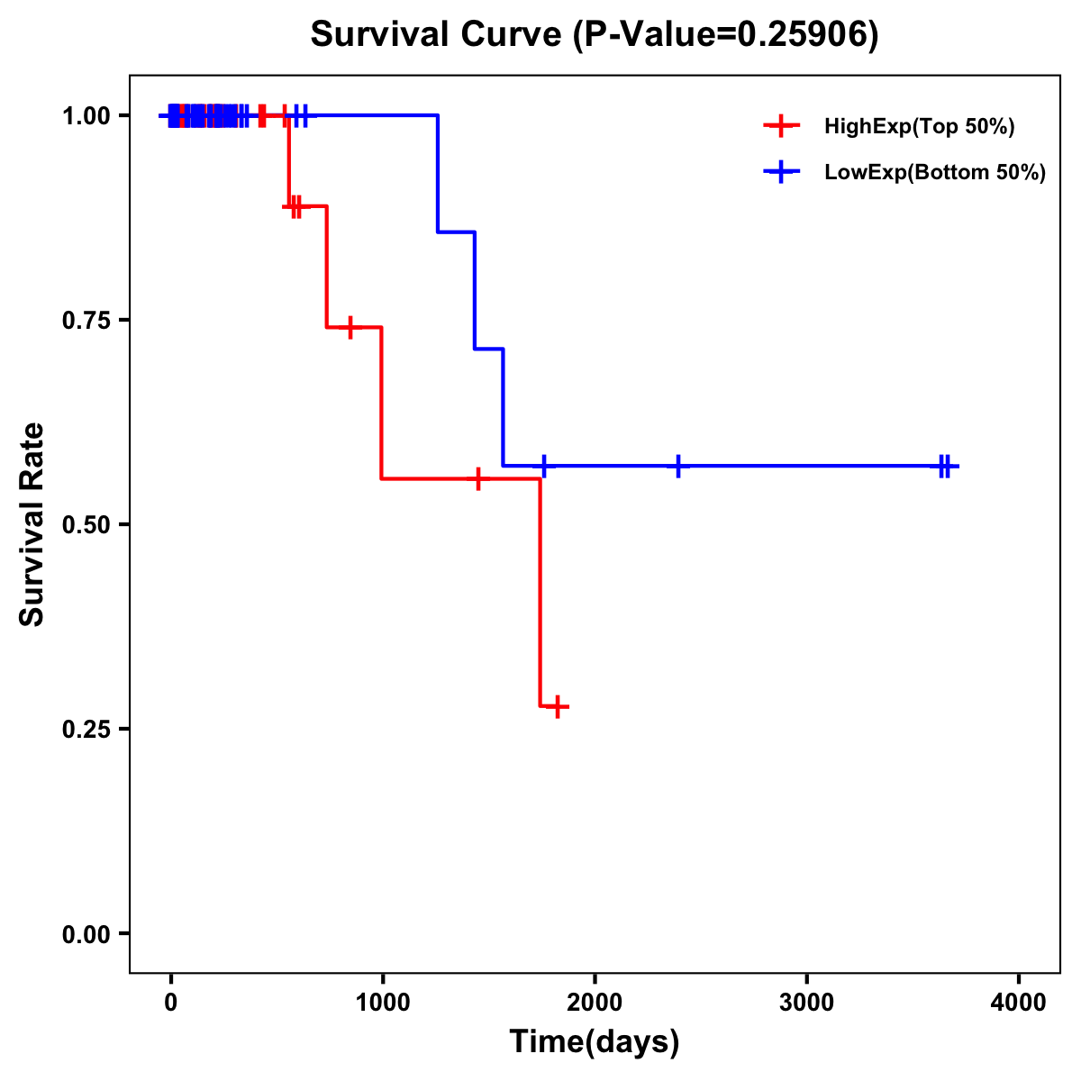 | Survival Curve of Colon Cancer on Expression Level |