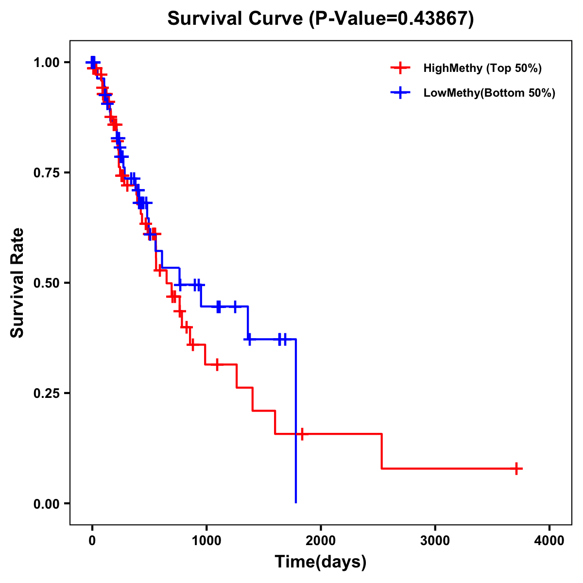 | Survival Curve of Esophagus Cancer of Expression | Survival Curve of Esophagus Cancer of Methylation | ||