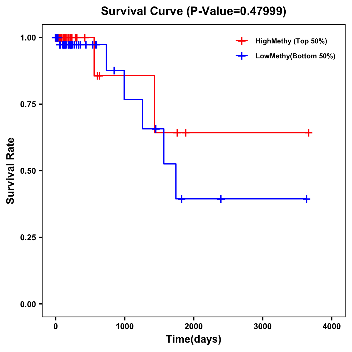 | Survival Curve of Colon Cancer on Methylation Level |