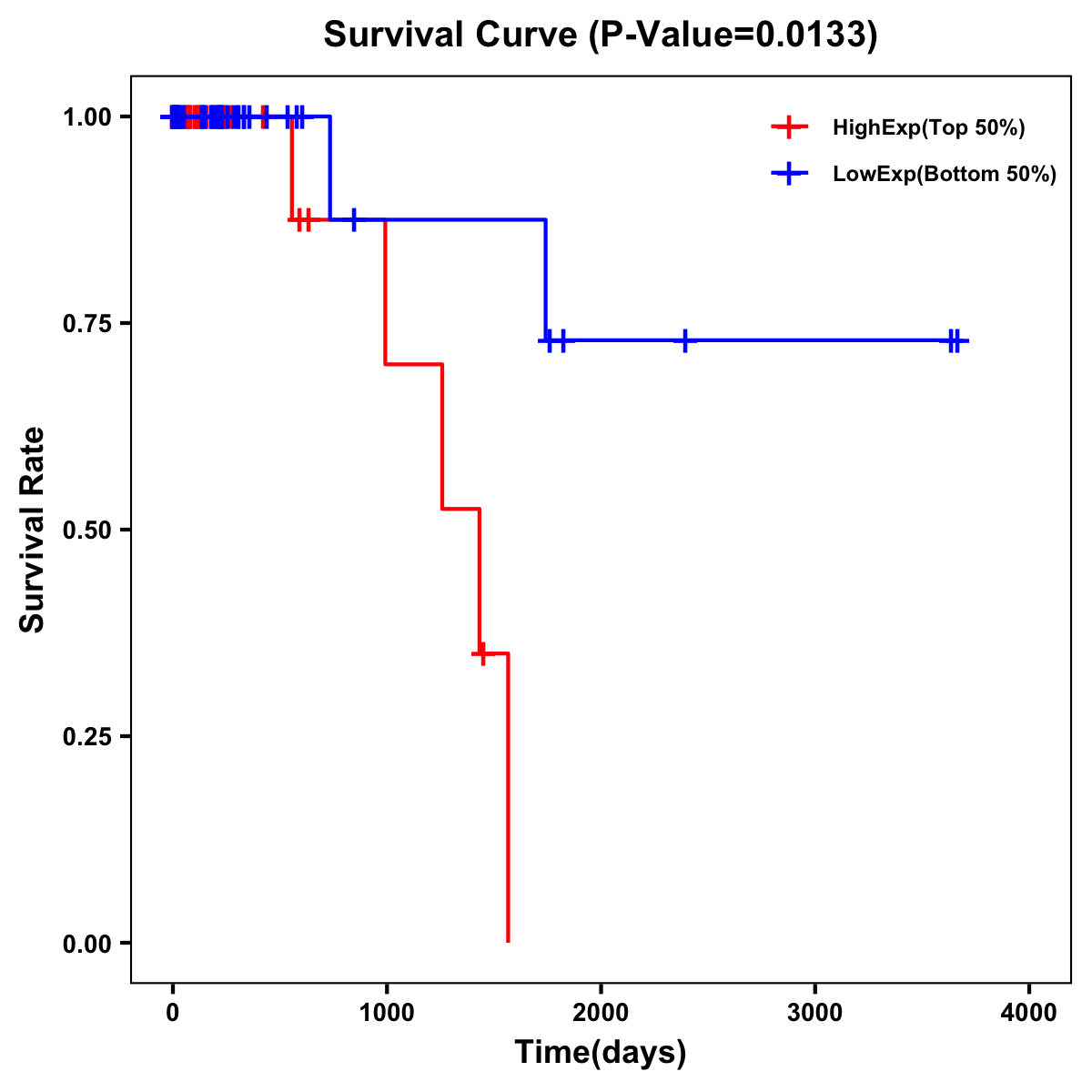 Survival Curve of Rectum Cancer on Expression Level |