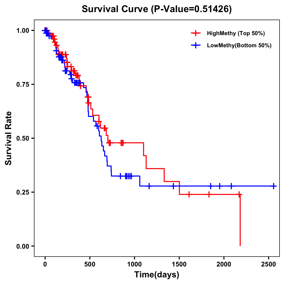| Survival Curve of Pancreatic Cancer of Expression | Survival Curve of Pancreatic Cancer of Methylation | ||