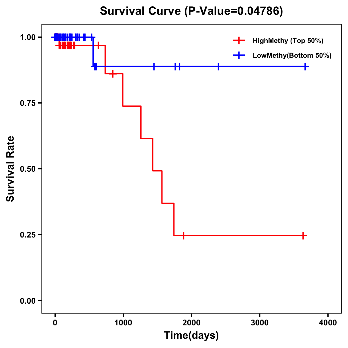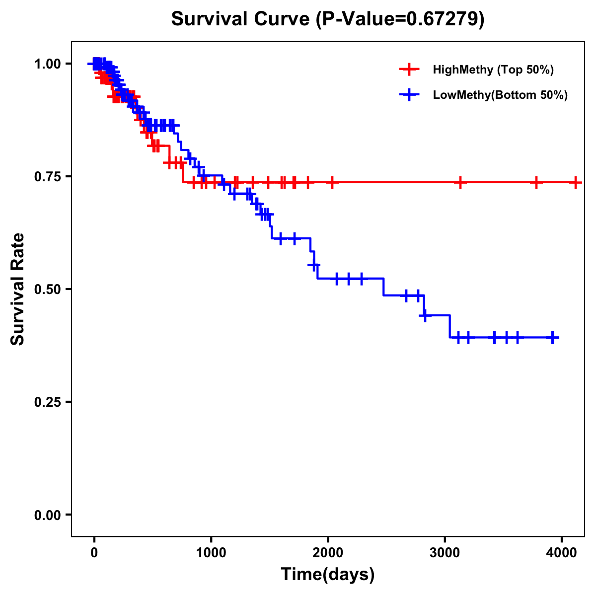 | Survival Curve of Colon Cancer on Methylation Level |