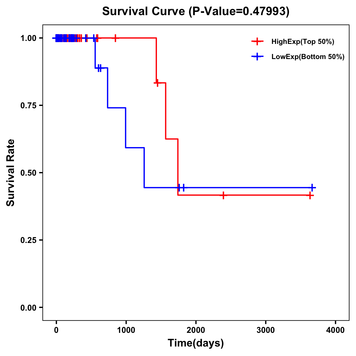 | Survival Curve of Colon Cancer on Expression Level |