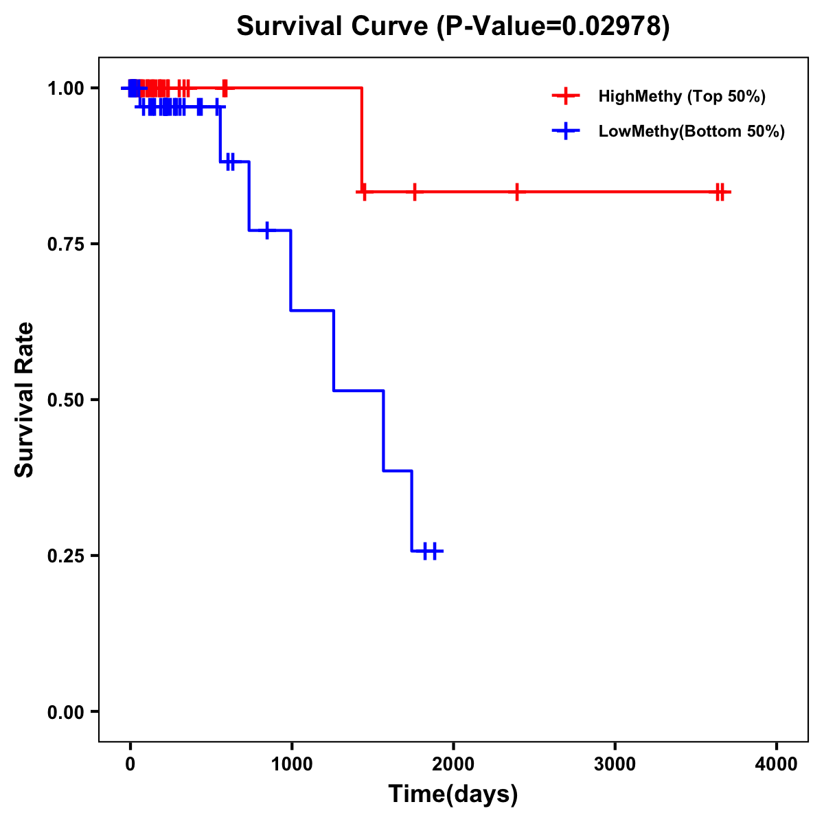 | Survival Curve of Colon Cancer on Methylation Level |