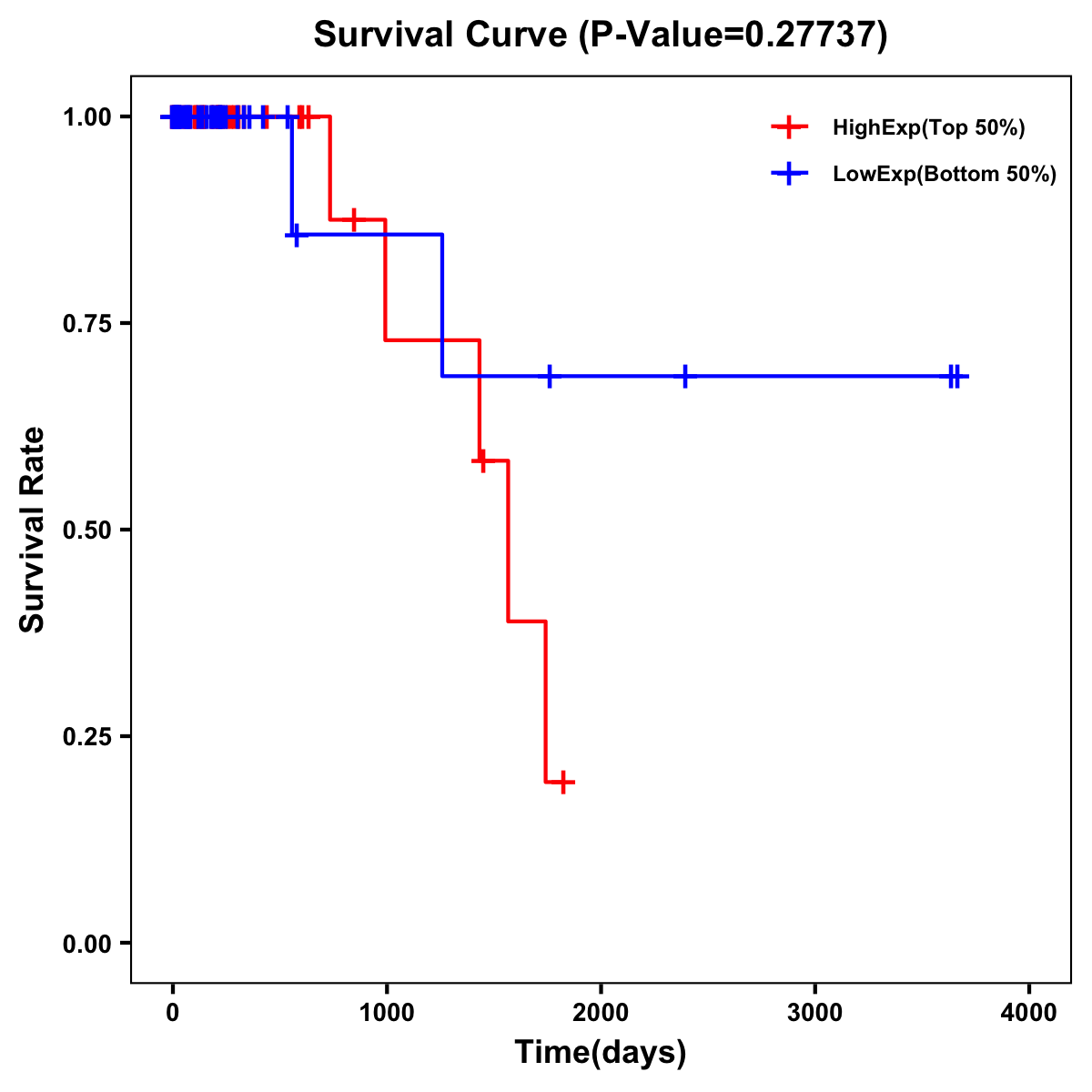 | Survival Curve of Colon Cancer on Expression Level |