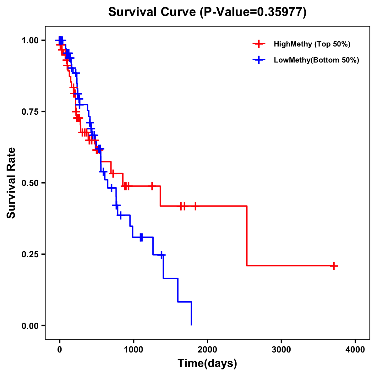 | Survival Curve of Esophagus Cancer of Expression | Survival Curve of Esophagus Cancer of Methylation | ||
