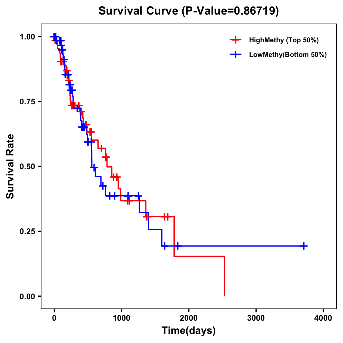 | Survival Curve of Esophagus Cancer of Expression | Survival Curve of Esophagus Cancer of Methylation | ||