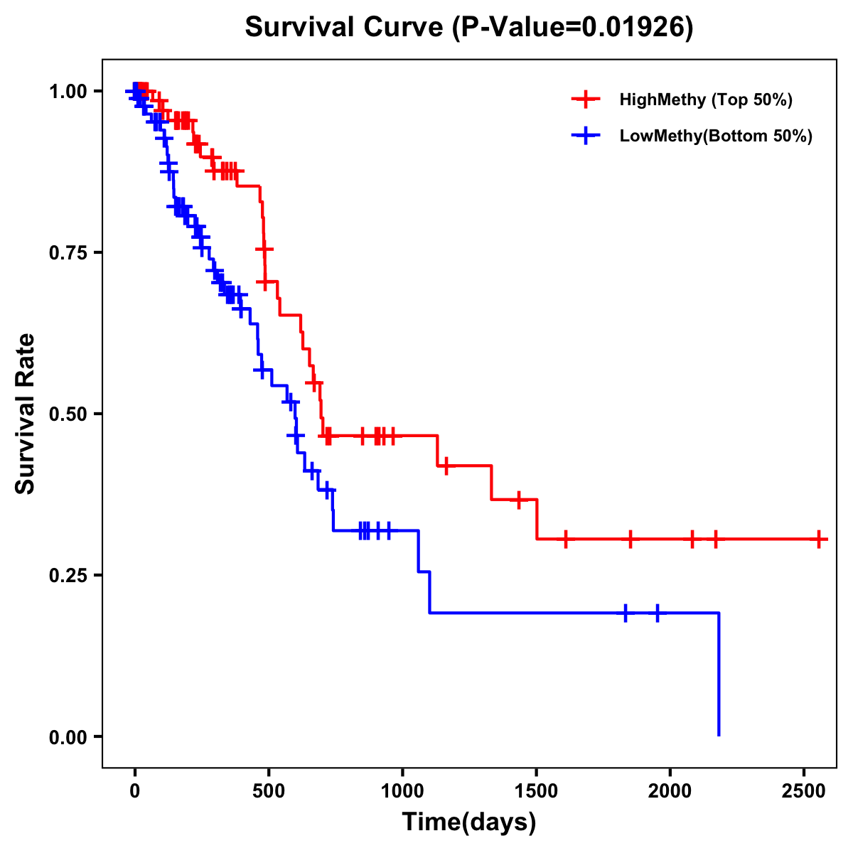 | Survival Curve of Pancreatic Cancer of Expression | Survival Curve of Pancreatic Cancer of Methylation | ||
