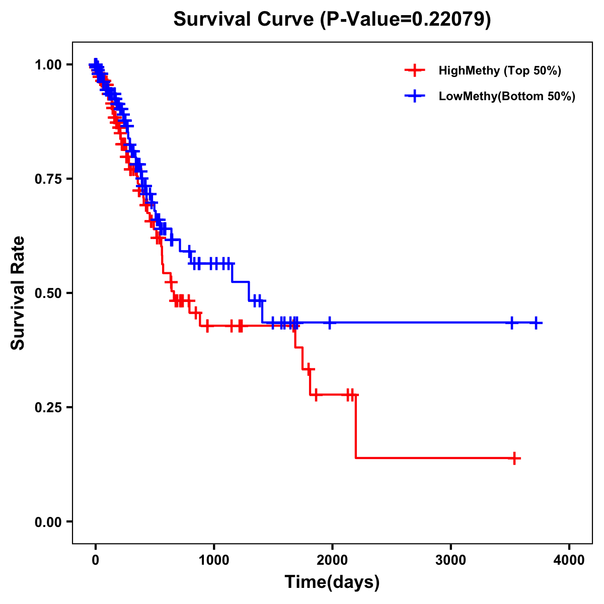 | Survival Curve of Stomach Cancer of Expression | Survival Curve of Stomach Cancer of Methylation | ||