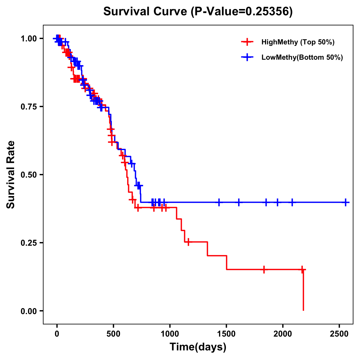 | Survival Curve of Pancreatic Cancer of Expression | Survival Curve of Pancreatic Cancer of Methylation | ||