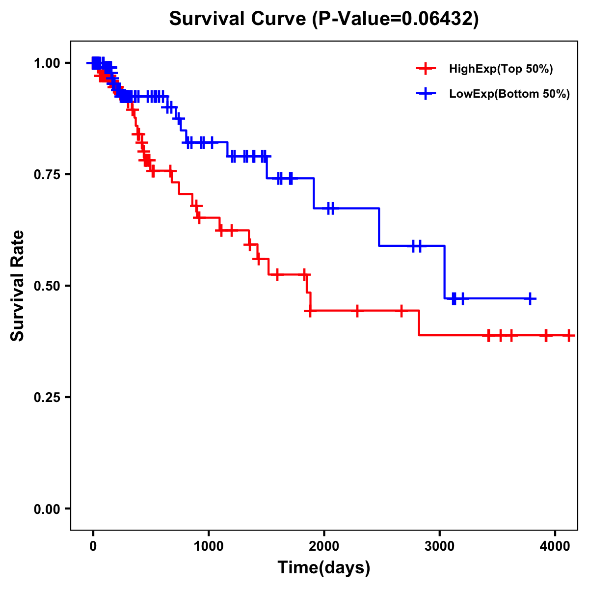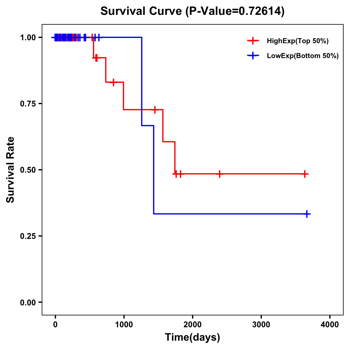 | Survival Curve of Colon Cancer on Expression Level |