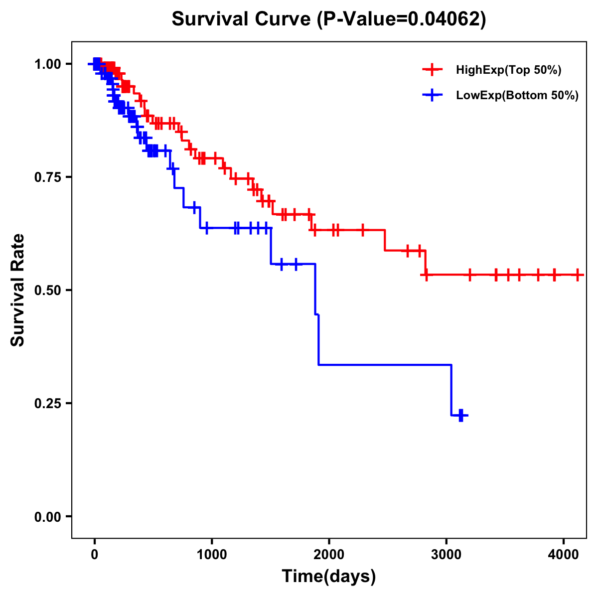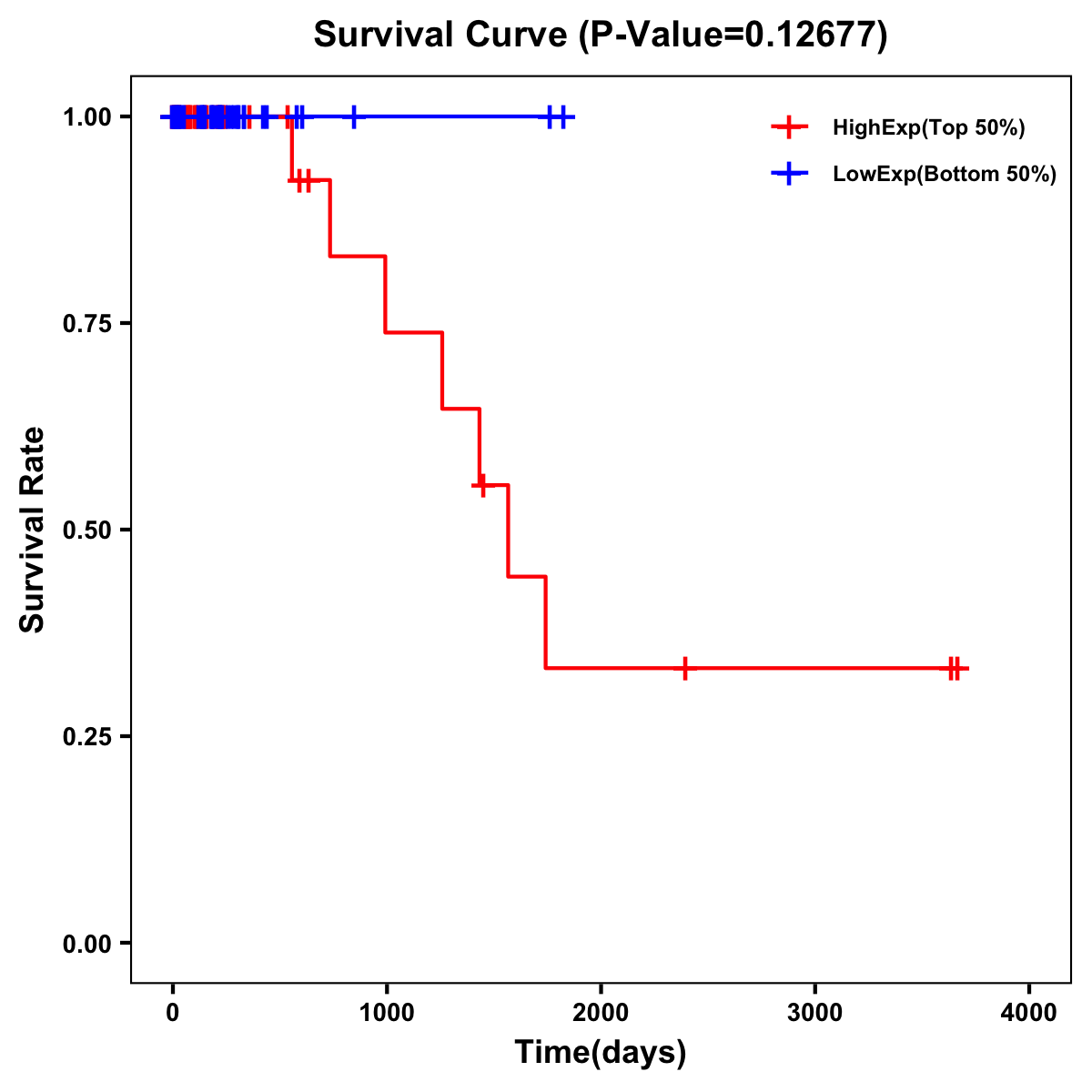 | Survival Curve of Colon Cancer on Expression Level |