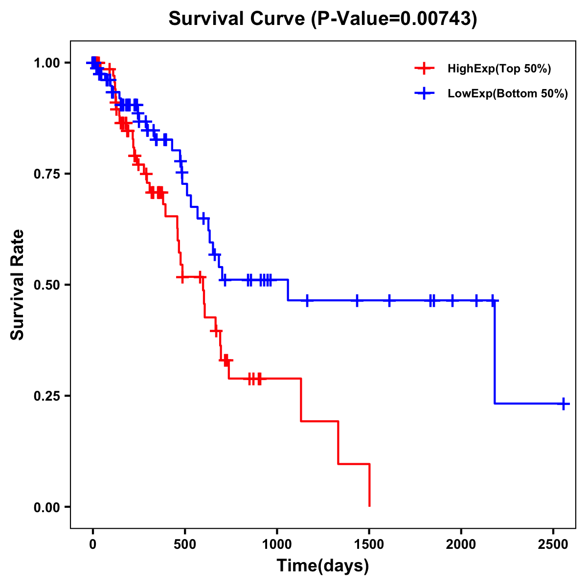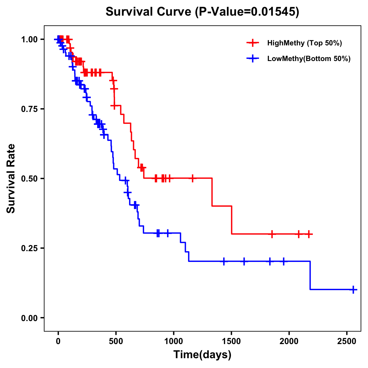 | Survival Curve of Pancreatic Cancer of Expression | Survival Curve of Pancreatic Cancer of Methylation | ||