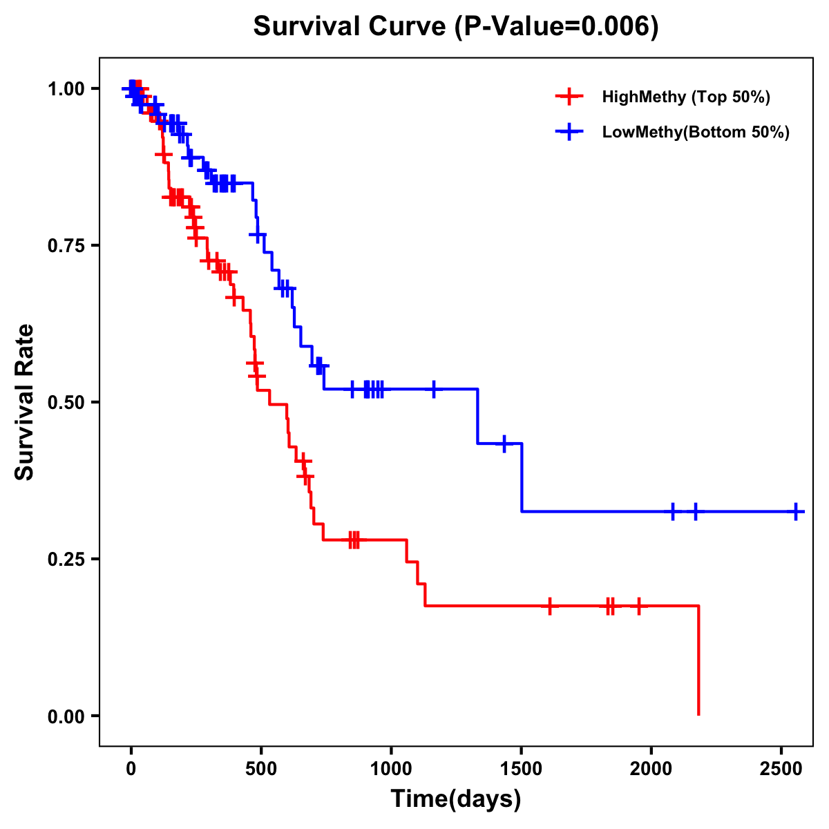 | Survival Curve of Pancreatic Cancer of Expression | Survival Curve of Pancreatic Cancer of Methylation | ||