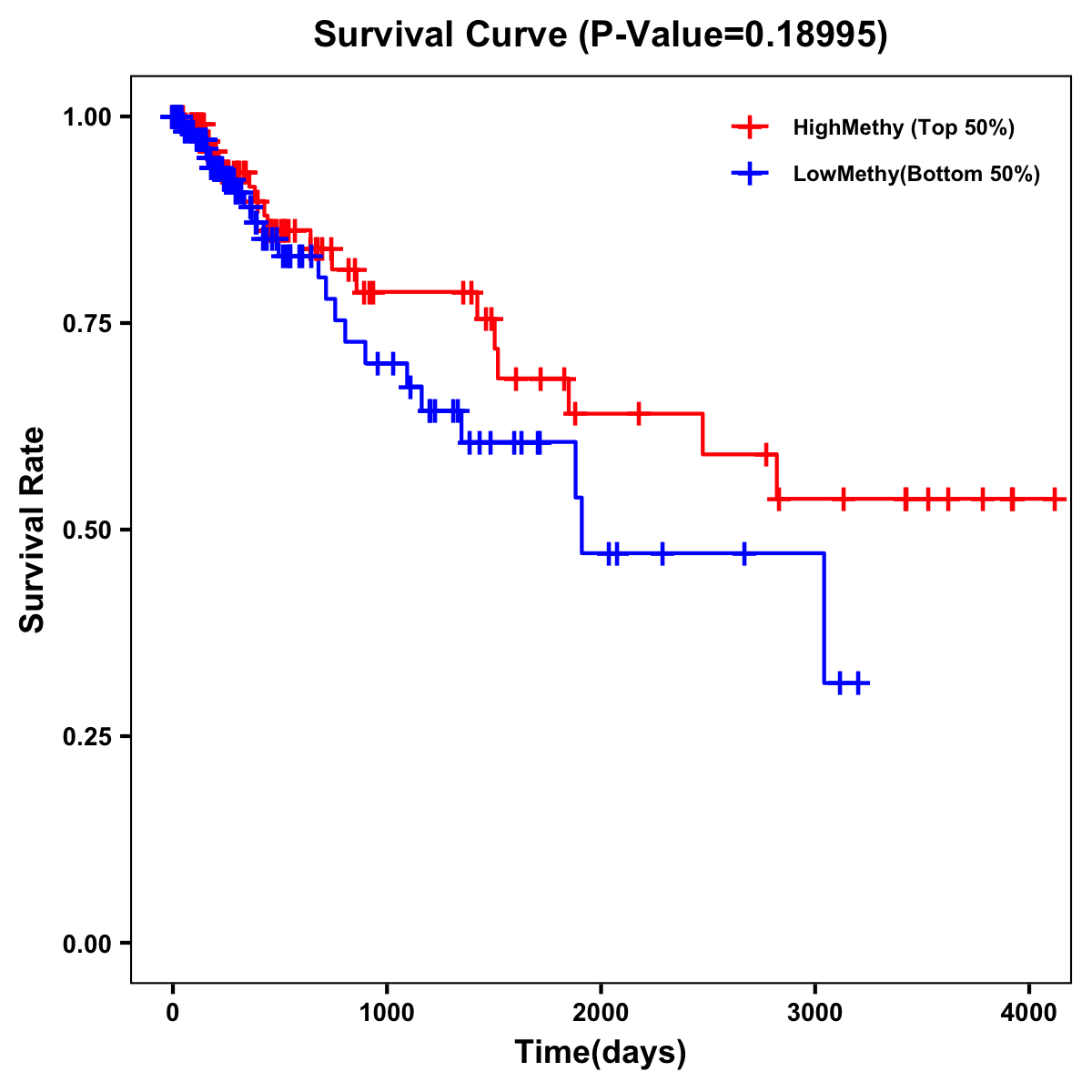 | Survival Curve of Colon Cancer on Methylation Level |
