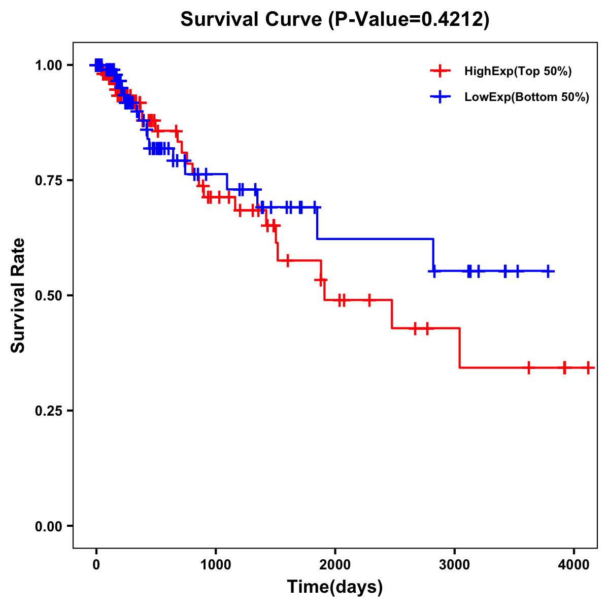 | Survival Curve of Colon Cancer on Expression Level |