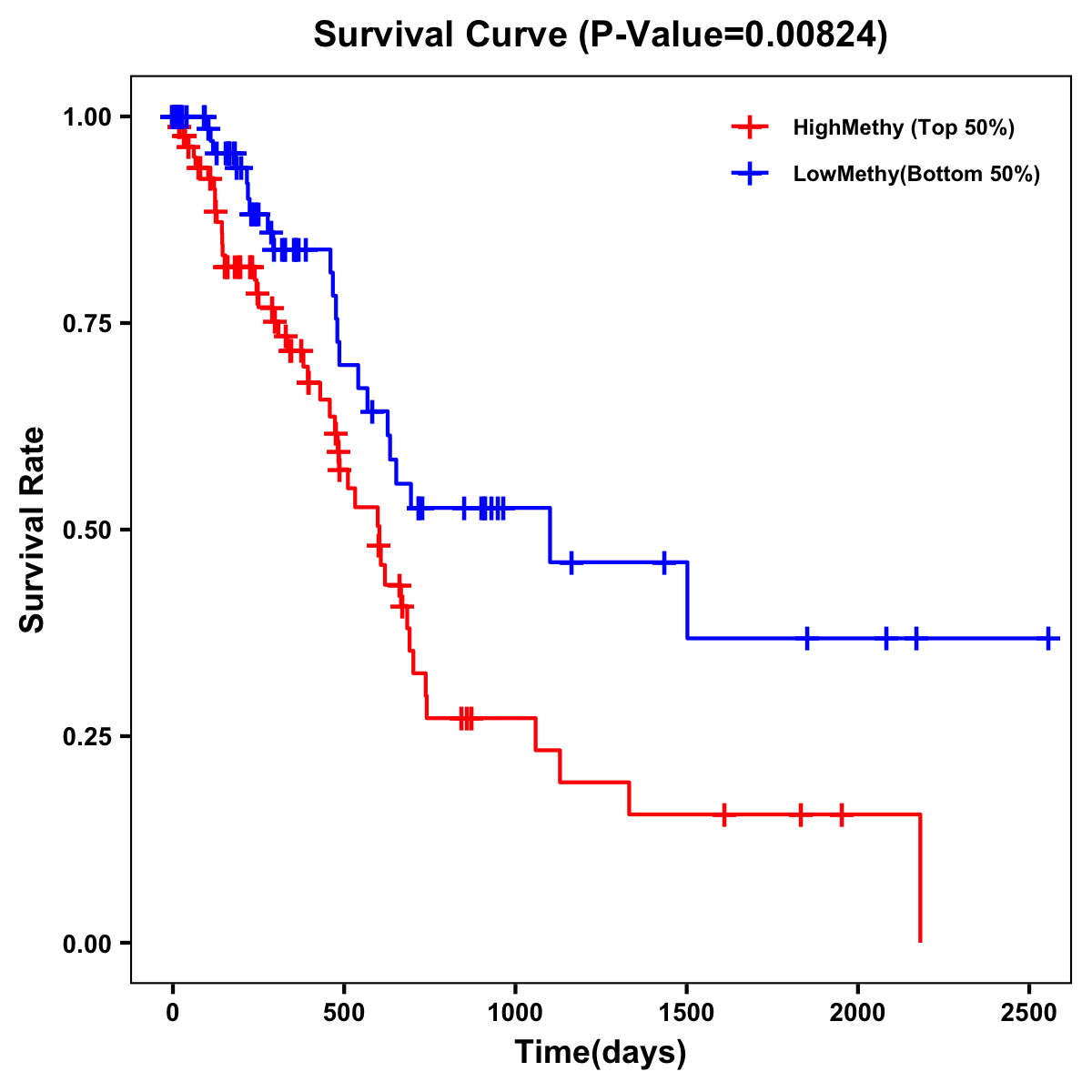 | Survival Curve of Pancreatic Cancer of Expression | Survival Curve of Pancreatic Cancer of Methylation | ||