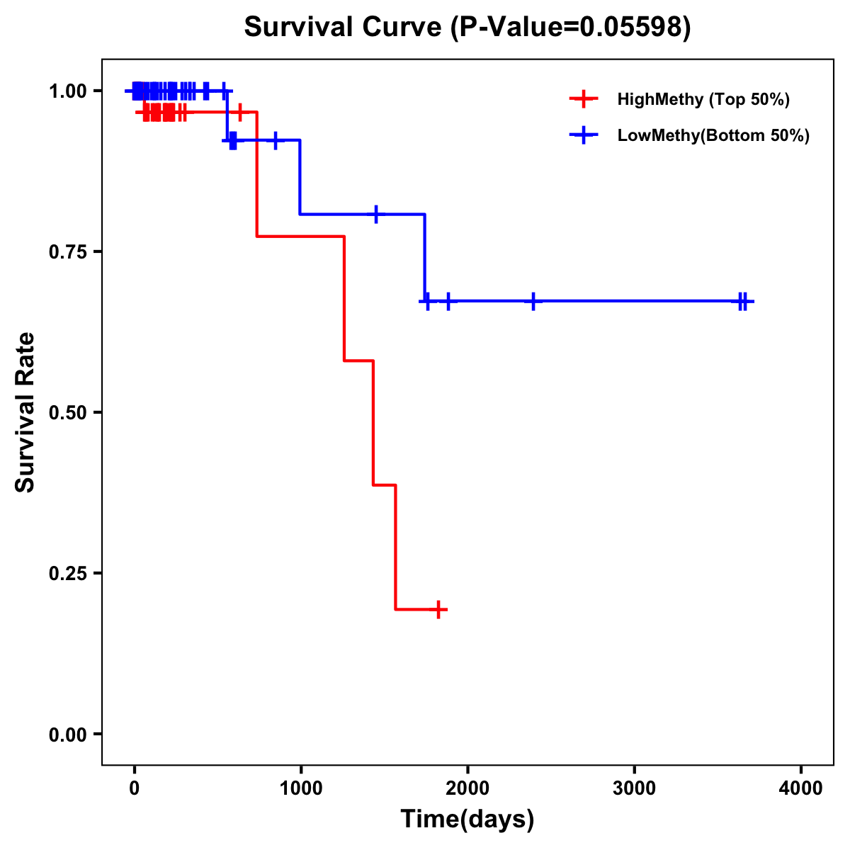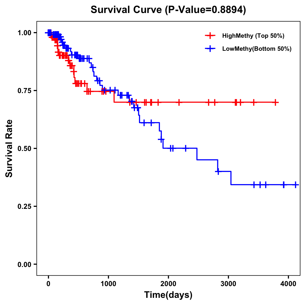 | Survival Curve of Colon Cancer on Methylation Level |