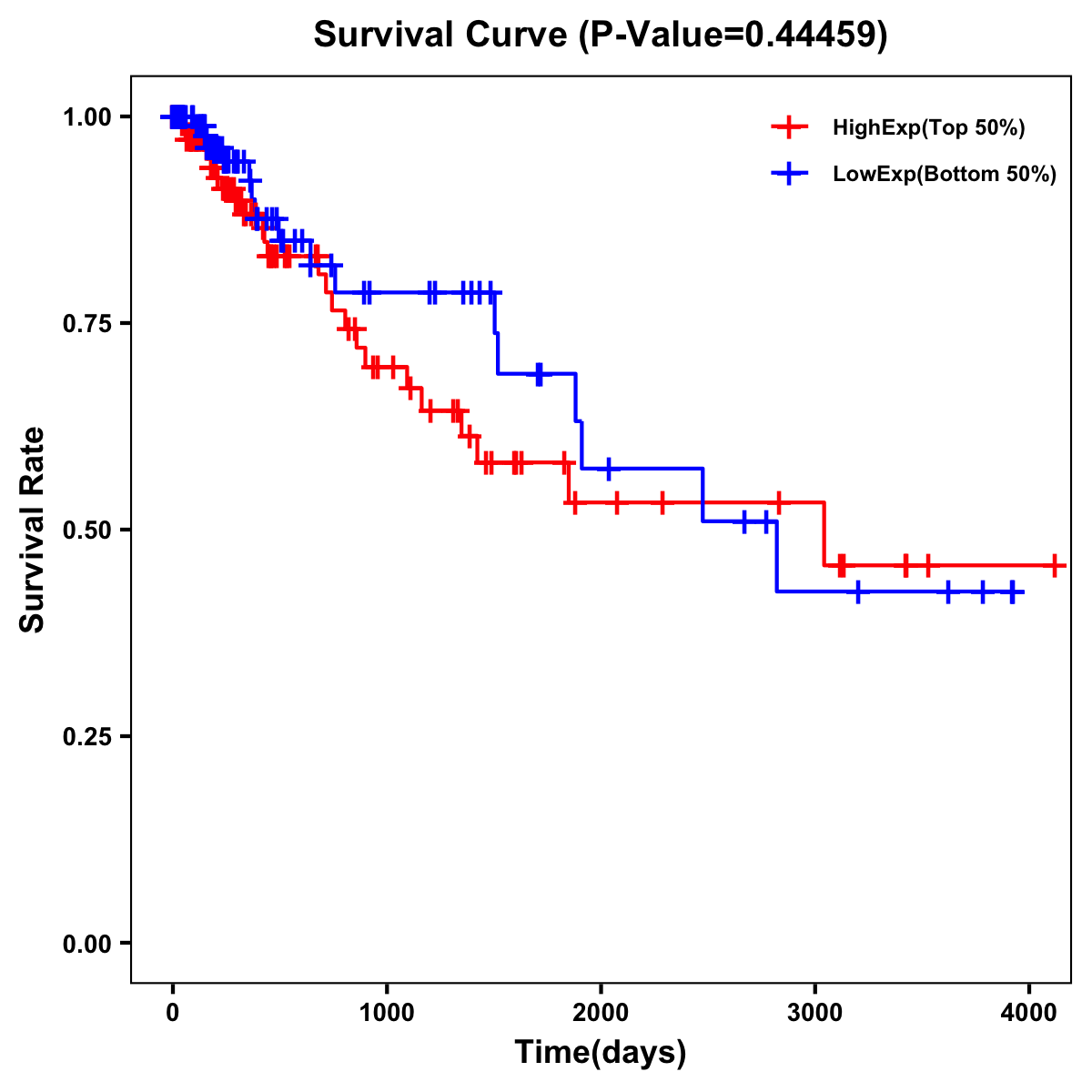 | Survival Curve of Colon Cancer on Expression Level |