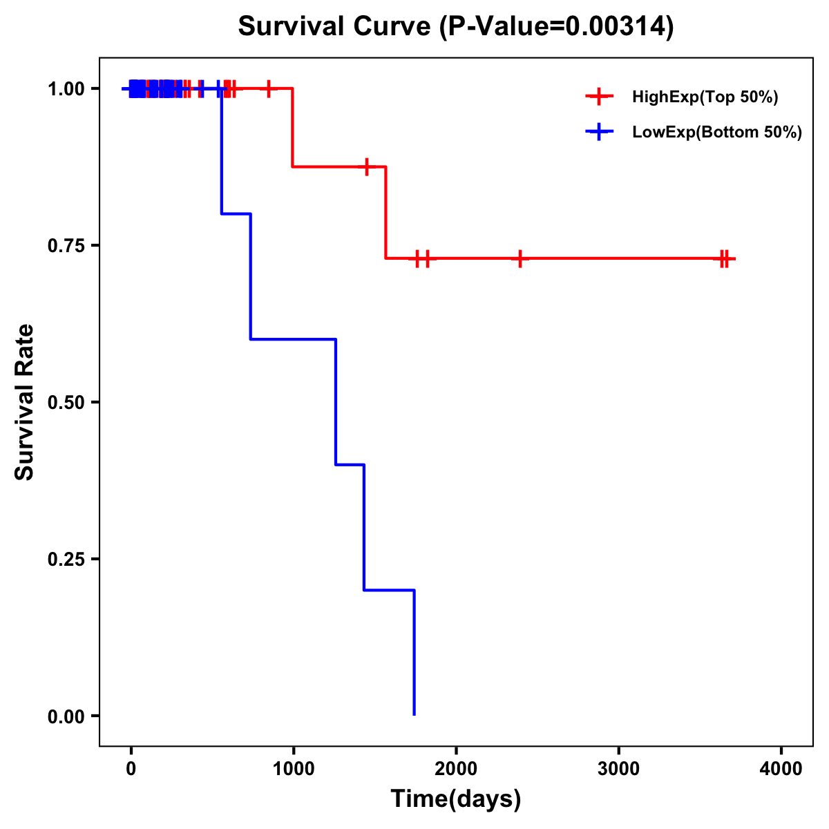 Survival Curve of Rectum Cancer on Expression Level |