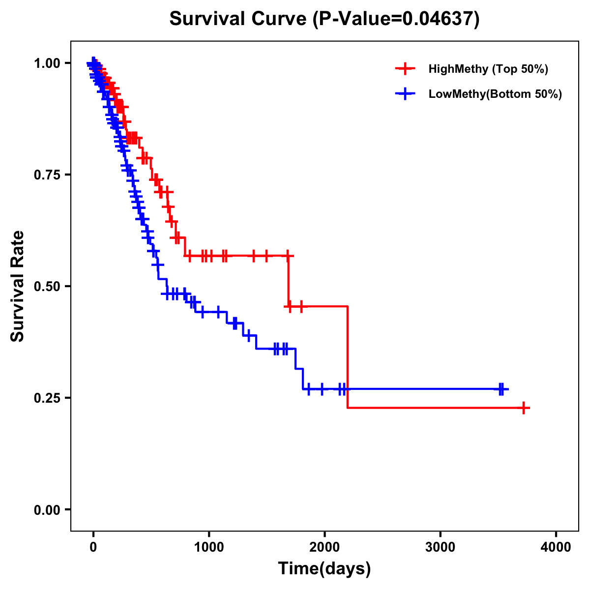 | Survival Curve of Stomach Cancer of Expression | Survival Curve of Stomach Cancer of Methylation | ||