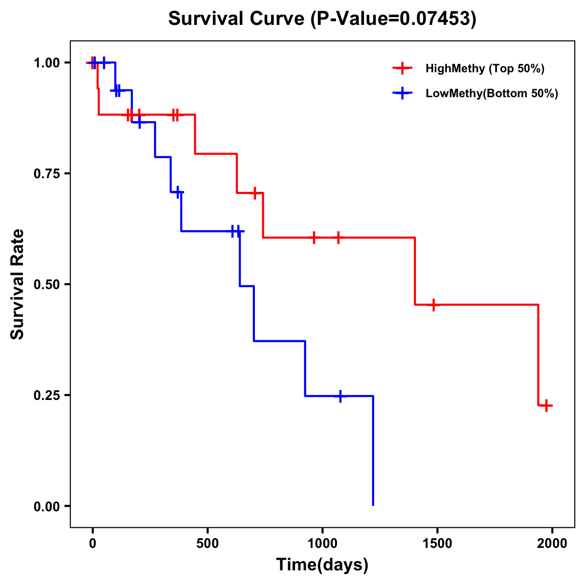 | Survival Curve of Biliary tract Cancer of Expression | Survival Curve of Biliary tract Cancer of Methylation | ||