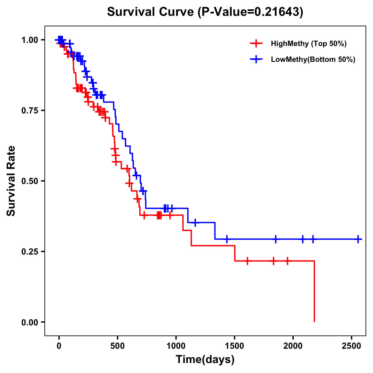 | Survival Curve of Pancreatic Cancer of Expression | Survival Curve of Pancreatic Cancer of Methylation | ||