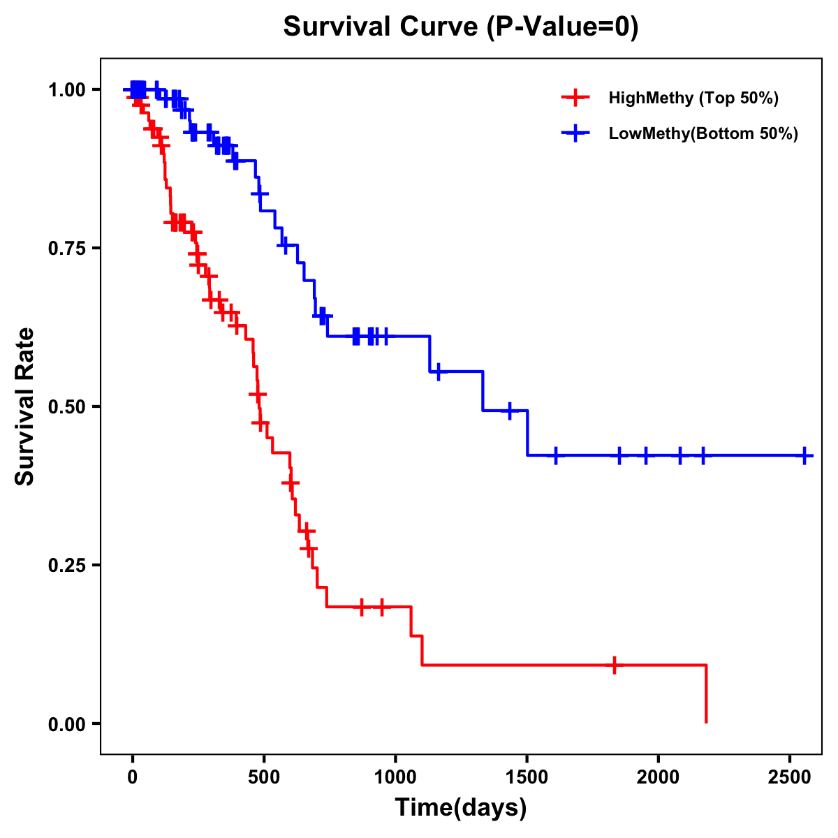 | Survival Curve of Pancreatic Cancer of Expression | Survival Curve of Pancreatic Cancer of Methylation | ||