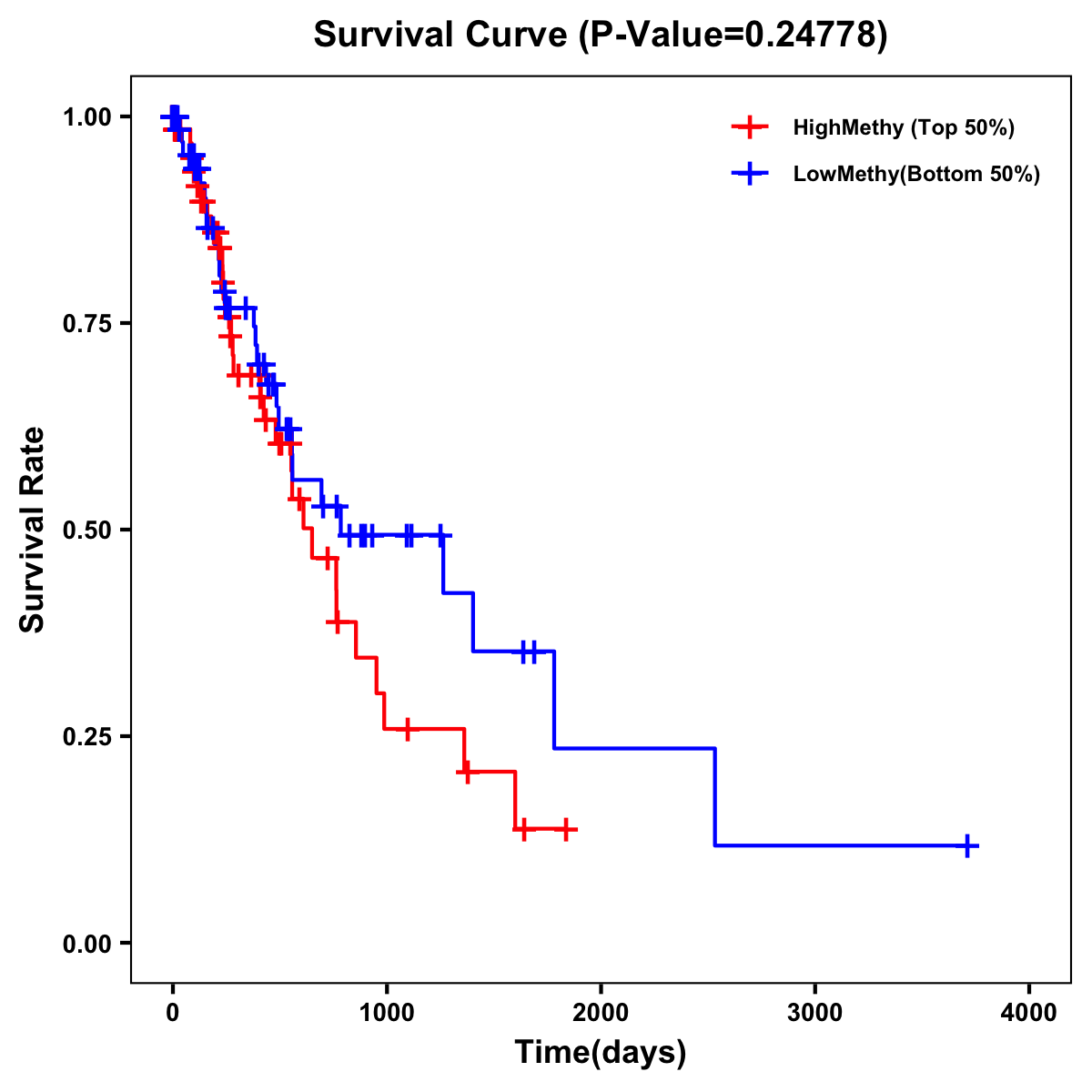 | Survival Curve of Esophagus Cancer of Expression | Survival Curve of Esophagus Cancer of Methylation | ||