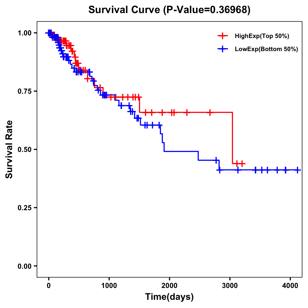 | Survival Curve of Colon Cancer on Expression Level |