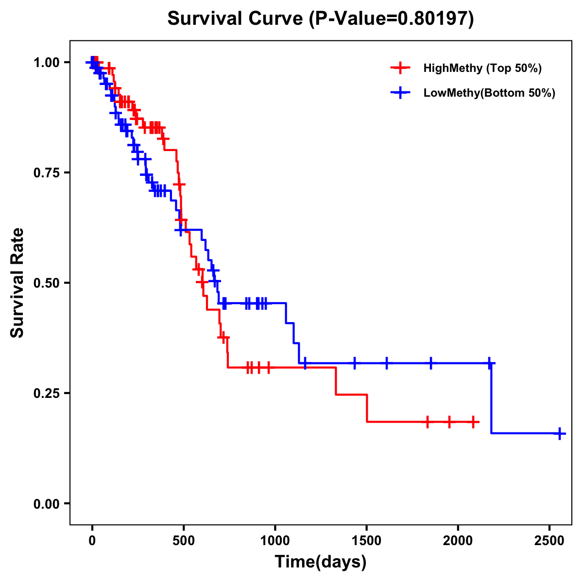 | Survival Curve of Pancreatic Cancer of Expression | Survival Curve of Pancreatic Cancer of Methylation | ||