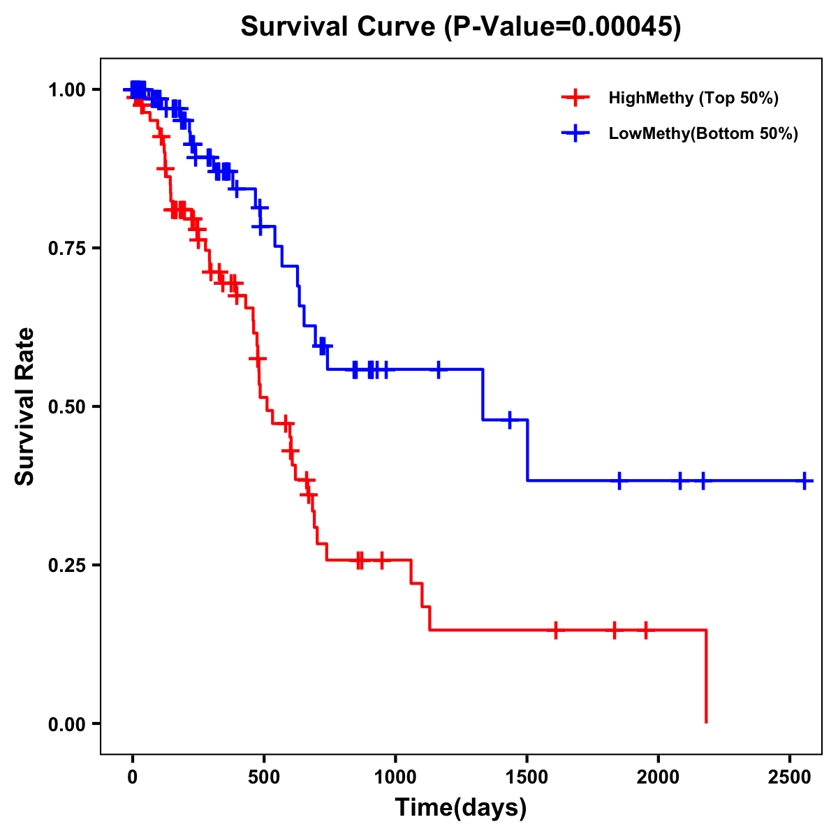 | Survival Curve of Pancreatic Cancer of Expression | Survival Curve of Pancreatic Cancer of Methylation | ||
