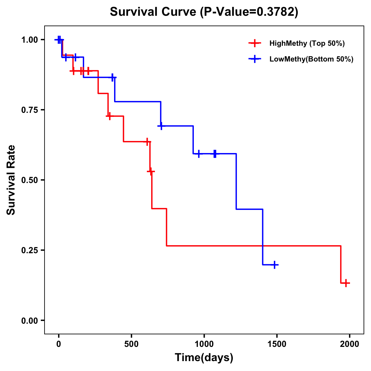 | Survival Curve of Biliary tract Cancer of Expression | Survival Curve of Biliary tract Cancer of Methylation | ||