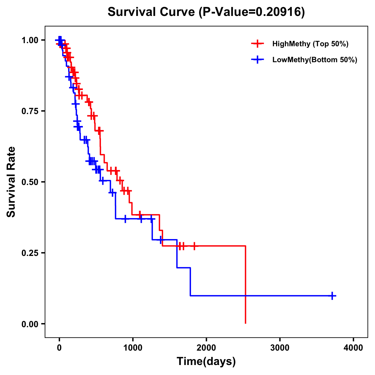 | Survival Curve of Esophagus Cancer of Expression | Survival Curve of Esophagus Cancer of Methylation | ||