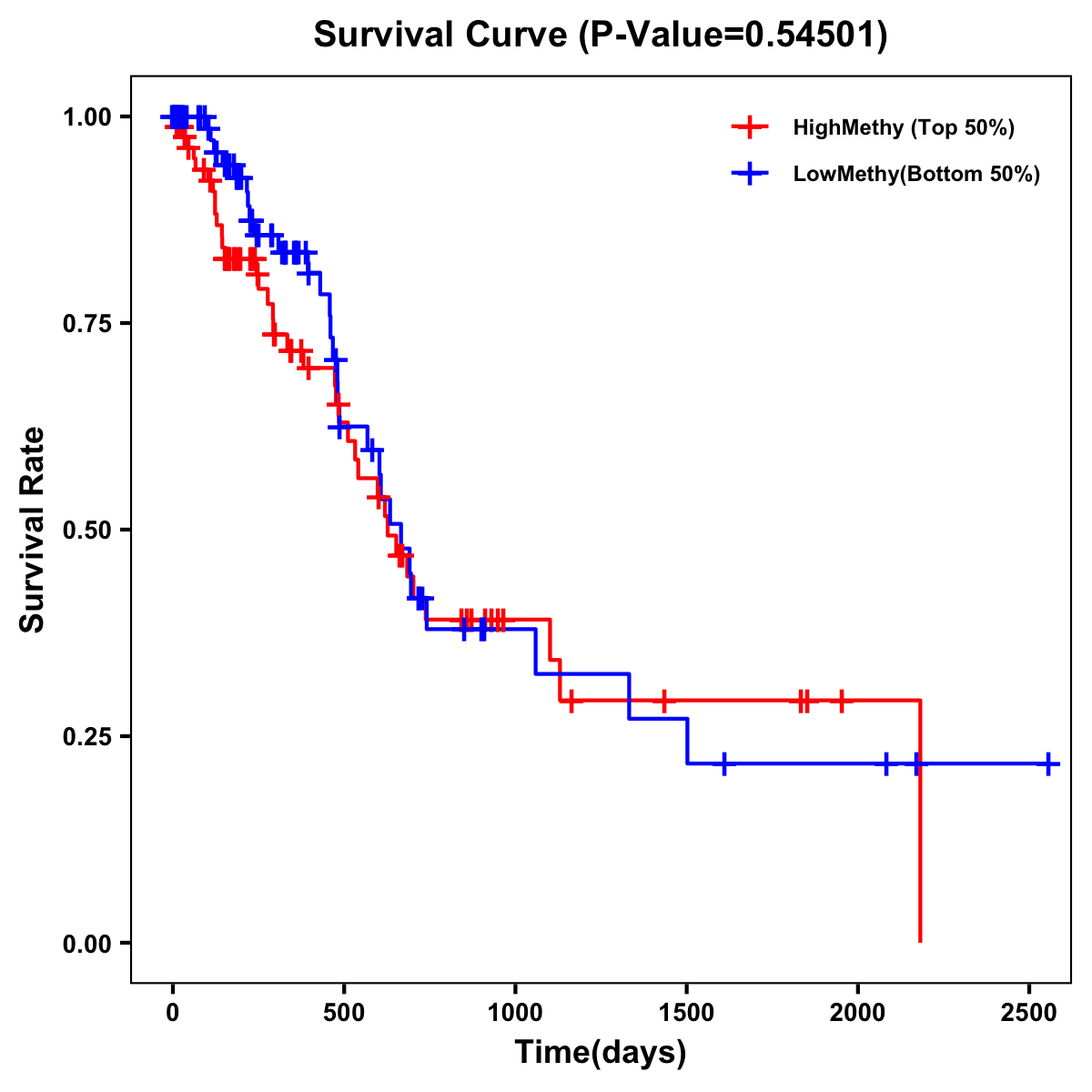 | Survival Curve of Pancreatic Cancer of Expression | Survival Curve of Pancreatic Cancer of Methylation | ||