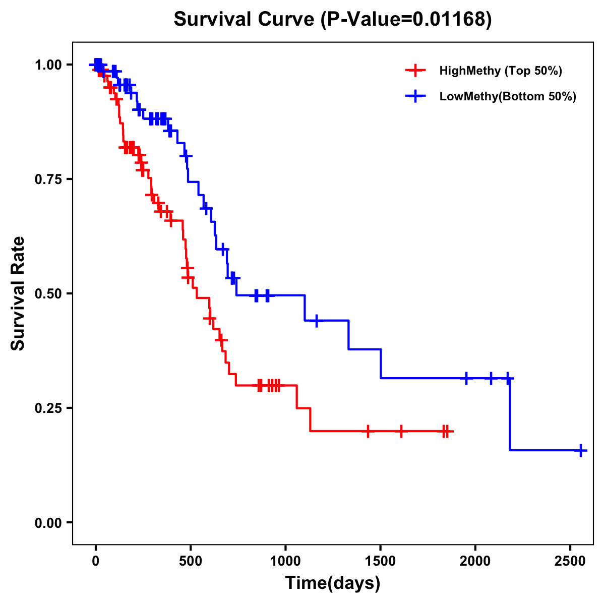 | Survival Curve of Pancreatic Cancer of Expression | Survival Curve of Pancreatic Cancer of Methylation | ||