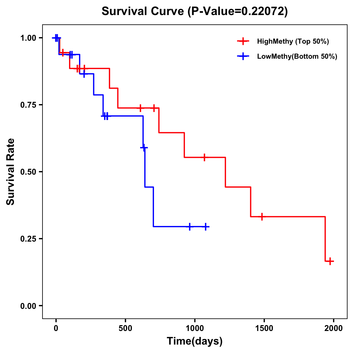 | Survival Curve of Biliary tract Cancer of Expression | Survival Curve of Biliary tract Cancer of Methylation | ||