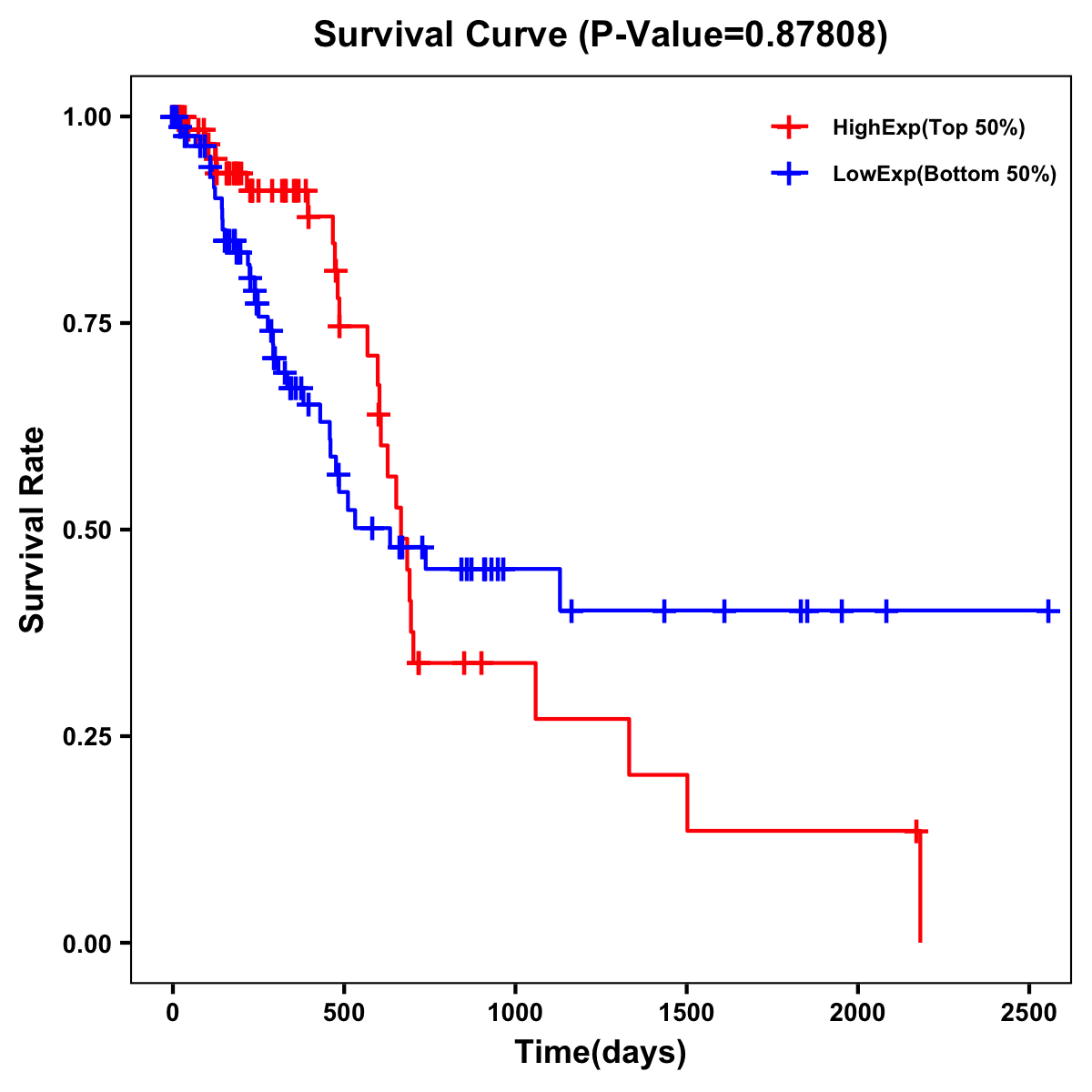 | Survival Curve of Pancreatic Cancer of Expression | Survival Curve of Pancreatic Cancer of Methylation | ||