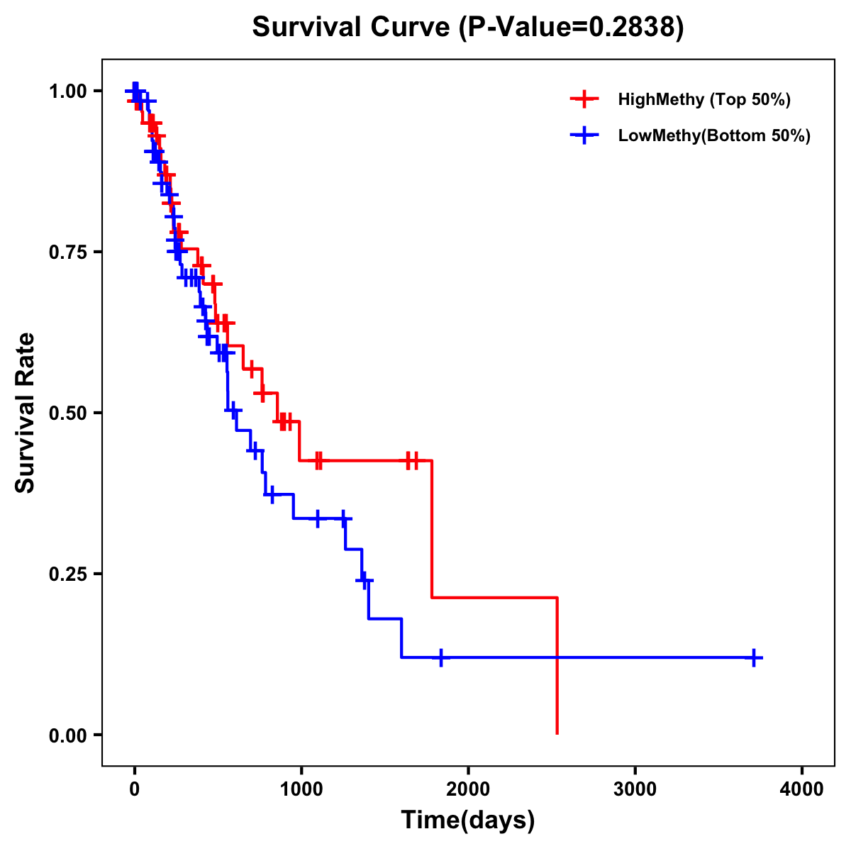 | Survival Curve of Esophagus Cancer of Expression | Survival Curve of Esophagus Cancer of Methylation | ||