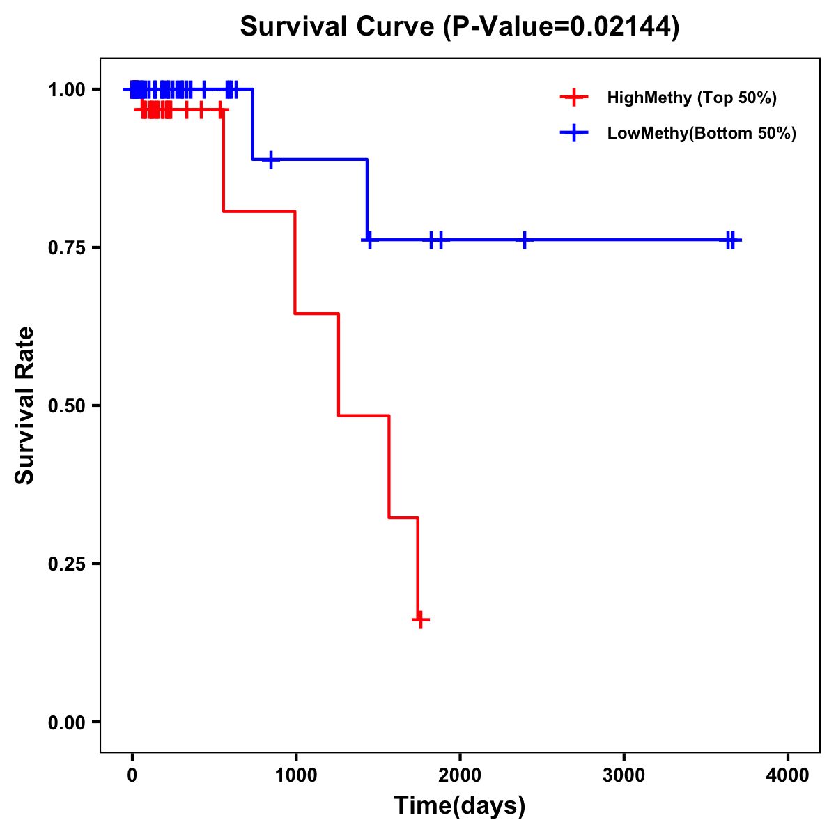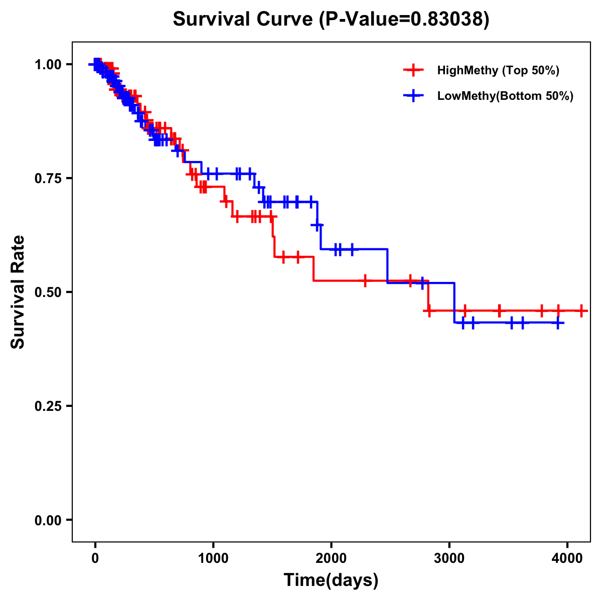 | Survival Curve of Colon Cancer on Methylation Level |