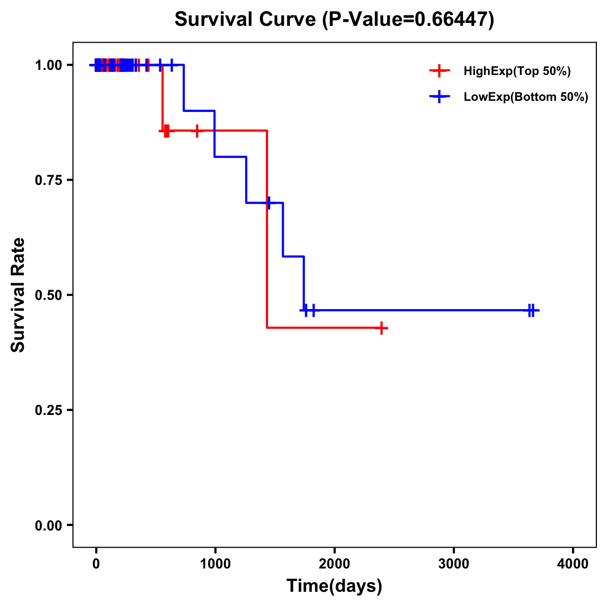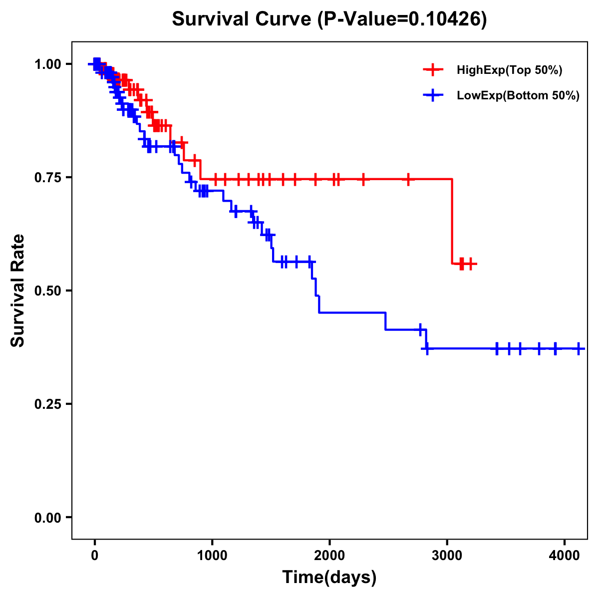 | Survival Curve of Colon Cancer on Expression Level |