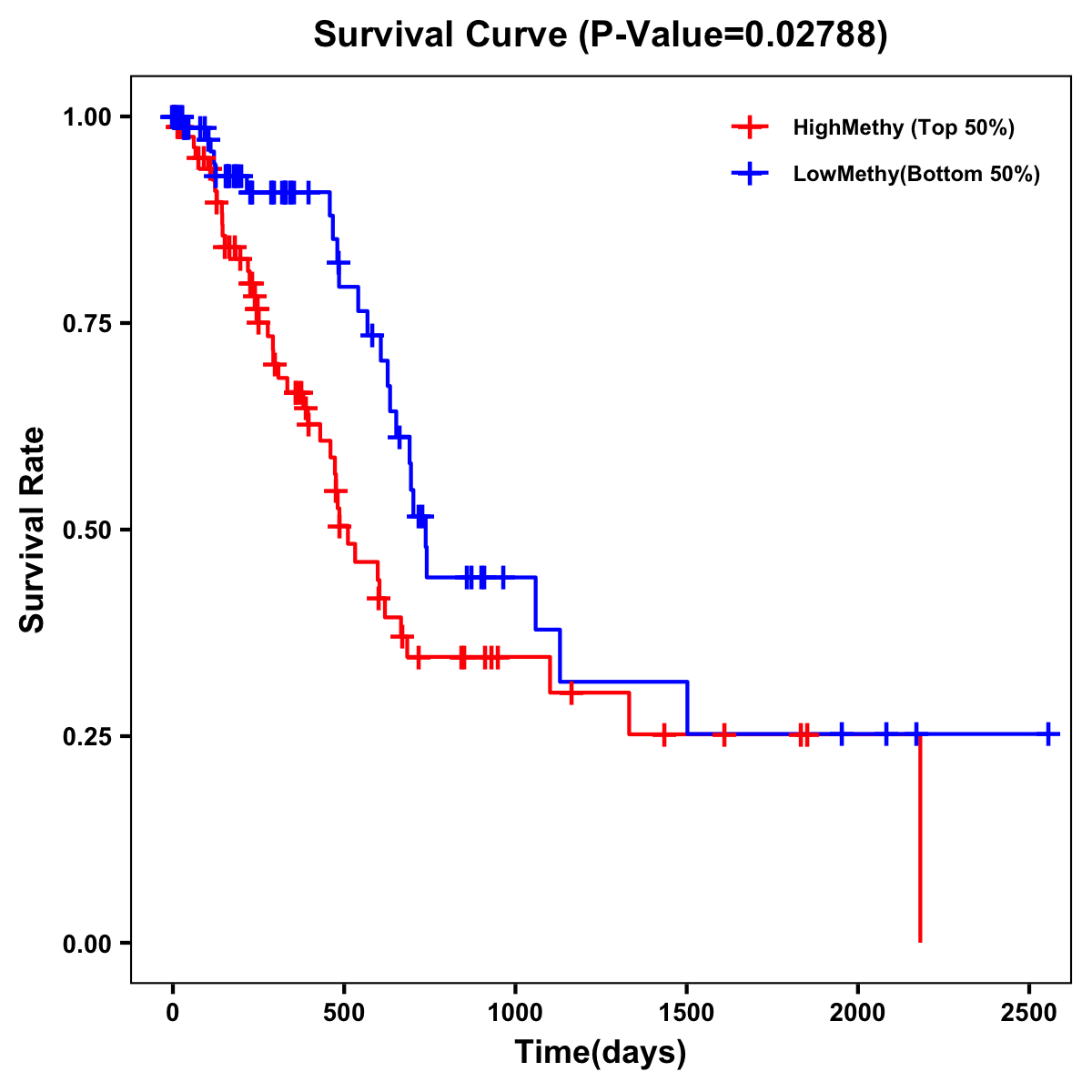 | Survival Curve of Pancreatic Cancer of Expression | Survival Curve of Pancreatic Cancer of Methylation | ||