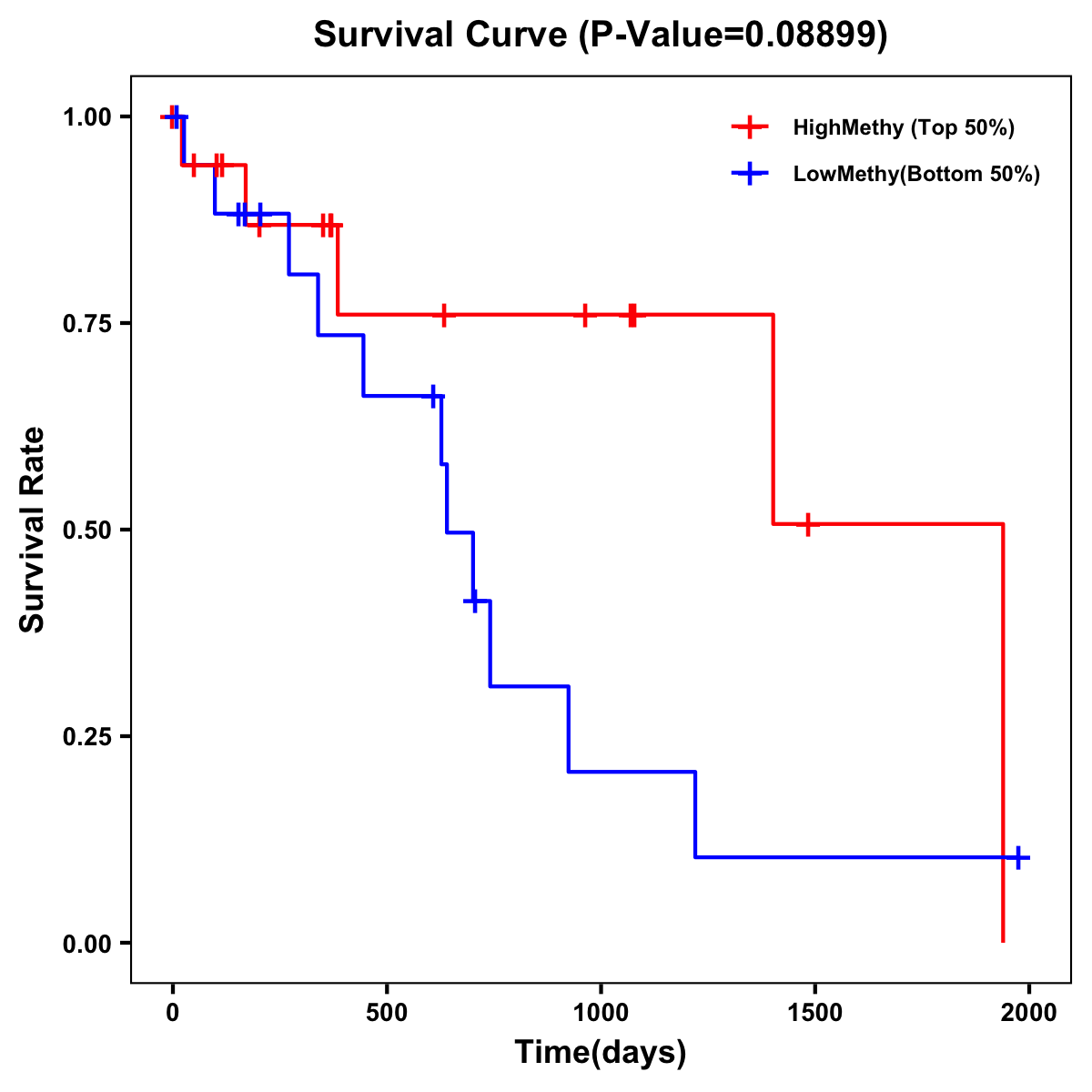 | Survival Curve of Biliary tract Cancer of Expression | Survival Curve of Biliary tract Cancer of Methylation | ||